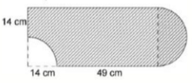 - Kereta api model (mainan) berjalan pada lintasan berbentuk seperti gambar di bawah ini. Apabila untuk menempuh satu putaran penuh diperlukan waktu 38 detik maka kecepatan kereta api tersebut dalam satuan km/jam adalah … (Gunakan nilai $\pi=\frac{22}{7}$)