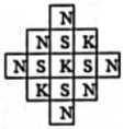 Berapa banyak semua kata KSN yang mungkin dapat dirangkai dengan menghubungkan petak-petak yang bersisian? (dua petak dikatakan bersisian jika memiliki sisi bersama). Salah satu contoh kata KSN diberikan pada gambar berikut:
