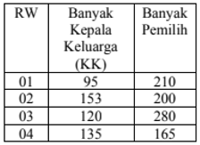 Rata-rata banyak pemilih di setiap RW yang bukan kepala keluarga (KK) adalah … orang.