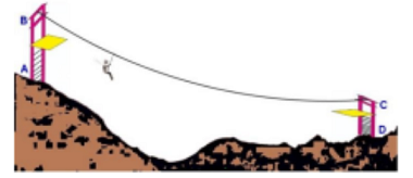 21. Pada suatu permainan flying fox, seorang pemain harus menaiki tangga AB kemudian meluncur pada kabel baja BC dan menuruni tangga CD. Tinggi AB dan CD masing-masing 3 meter. David menaiki tangga AB dengan kecepatan 2 meter/menit, meluncur pada BC dengan kecepatan 15 km/jam dan menuruni tangga CD dengan kecepatan 3 meter/menit. Jika waktu yang diperlukan David untuk bermain flying fox adalah 5 menit (dari A ke D), maka panjang kabel baja flying fox adalah … meter.