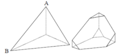 - A solid triangular pyramid has six edges such as AB. Each corner is cut off. (see new figure) How many edges will the new figure have?