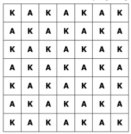 Kata KAKAK yang dicari hanya pada garis mendatar (boleh dari kanan ke kiri atau sebaliknya) atau tegak (boleh dari atas ke bawah atau sebaliknya). Paling banyak kata KAKAK yang bisa diperoleh Ari adalah ….