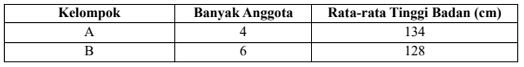 Seorang anak dari kelompok A dan seorang anak dari kelompok B bertukar posisi kelompok sehingga rata-rata tinggi badan kedua kelompok tersebut berbeda 1 cm. Jika tinggi badan (dalam cm) setiap anak adalah bilangan bulat, maka selisih tinggi badan kedua anak yang bertukar posisi kelompok tersebut adalah … cm.