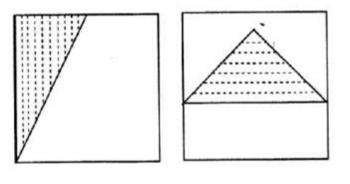 Suatu kardus polos dari kertas berbentuk kubus. Volume kardus adalah 64.000$cm^{3}$. Fitri memotong tepat pada rusuk kubus dan mengambil dua sisi bagian samping kardus tersebut. Fitri melukis garis pada satu potongan sisi kardus dan diperoleh satu segitiga siku-siku yang perbandingan dua sisi siku-siku adalah 1:2. Pada satu potongan sisi kardus yang lain dilukis satu segitiga sama kaki (lihat gambar). Jika ternyata dua segitiga ini sama luasnya, maka panjang sisi yang sama pada segitiga sama kaki adalah … cm.