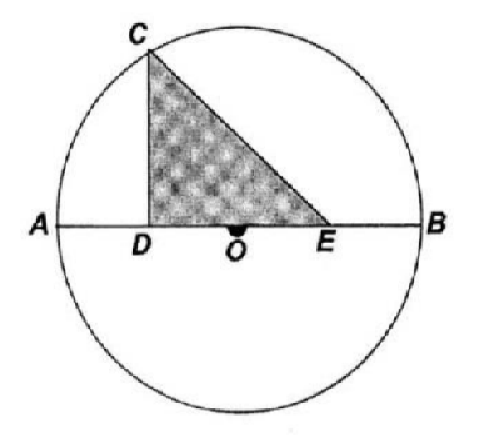 Diketahui lingkaran dengan pusat $O$ dan mempunyai diameter $AB$. Segitiga $CDE$ siku-siku di $D$, $DE$ pada diameter $AB$ sehingga $DO=OE$ dan $CD=DE$ untuk suatu titik $C$ pada lingkaran. Jika jari-jari lingkaran adalah 1 cm, maka luas segitiga $CDE$ = … $cm^{2}$.
