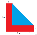 - Di samping kolam ikan berbentuk segitiga, dibangun jalan berbentuk $L$ dengan panjang 3 meter dan lebar $x$ meter, seperti yang terlihat pada gambar berikut: