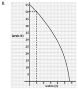 - A bergerak mendekati B yang berjarak 55 km dengan kecepatan 5 km/jam. Satu jam kemudian, B bergerak menuju A dengan kecepatan $x$ km/jam, dengan $x$ adalah waktu (dalam jam) ketika B berangkat sampai bertemu A. Grafik yang menyatakan hubungan antar waktu $(t)$ yang dibutuhkan A bertemu B dengan jarak (S) A dan B adalah …
