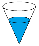 - Suatu bak penampungan air berbentuk kerucut terbalik (seperti gambar) berisi air dengan volume 1 liter. Jika bak penampungan tersebut ditambahkan air sebanyak 331 mililiter, maka perbandingan antara tinggi air di dalam bak penampungan mula-mula dan setelah ditambahkan air adalah …