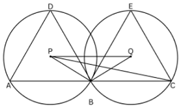 Diketahui dua segitiga sama sisi $ABD$ dan $BCE$ dengan panjang sisi yang sama dan titik $A, B,$ dan $C$ kolinear. Titik $P$ dan $Q$ berturut-turut adalah titik pusat lingkaran luar segitiga $ABD$ dan titik pusat lingkaran luar segitiga $BCE$. Jika luas lingkaran luar segitiga $BPC$ adalah 126, maka luas lingkaran luar segitiga $BPQ$ adalah…