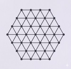 10. Diberikan 37 titik seperti pada gambar sehingga setiap dua titik yang bertetangga berjarak satu satuan. Dari setiap tiga titik berbeda di gambar segitiga merah. Banyaknya kemungkinan panjang sisi segitiga merah yang sama sisi adalah …