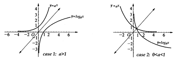 Grafik $y = a^x$ dan grafik $y = log_a x$ merupakan simetri terhadap garis $y = x$, seperti yang ditunjukkan pada diagram berikut.
