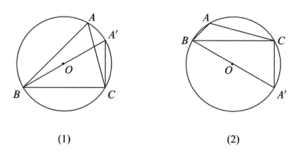 (i) Ketika $\angle A$ lancip, seperti yang ditunjukkan pada gambar (1), $$a=2R\sin A’=2R\sin A.$$