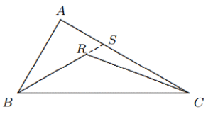 - Diketahui titik $R$ merupakan titik dalam $\Delta ABC$, buktikan bahwa $AB + AC > BR + RC$.