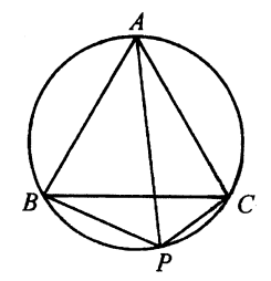 Lemma: Jika $P$ adalah titik pada lingkaran luar segitiga sama sisi $ABC$, maka nilai dari $$PA^2+PB^2+PC^2$$ tidak tergantung pada pilihan $P$.