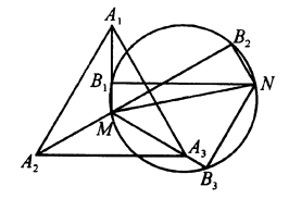 Solusi: Lima titik $M,B_1,B_2,N,B_3$ konsiklik dan $\angle B_1MB_3 =120^o$, maka $\angle B_1B_2B_3=60^o$ dan $$\angle B_1B_3B_2=\angle B_1MB_2=\angle A_1MB_2=60^o,$$ oleh karena itu $\Delta B_1B_2B_3$ sama sisi. Misalkan $s$ menjadi panjang sisinya.