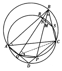 Karena $\angle OO_4O_3=\angle T_4O_4T_3=180^o-\angle CAB=180^o-\alpha$, dan $\angle DOO_4=\angle DO_3T_3=\alpha$, maka $OD||O_3O_4$, maka $OD \bot AB$. - $ABCD$ adalah segi empat cembung, lingkaran luar $\Delta ABC$ memotong $CD, DA$ di titik $P, Q,$ dan lingkaran luar $\Delta ACD$ memotong $AB, BC$ di titik $R, S$. Garis $BP, BQ$ memotong garis $RS$ di titik $M, N$. Buktikan bahwa $M, N, Q, P$ konsiklik.