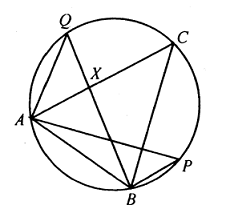 Dalam gambar (1), panjang $AC$ yang lebih panjang diberikan oleh $$AC=\sqrt{(4-3)^2+(4+3)^2}=\sqrt{50}=5\sqrt{2};$$ dan panjang $AC$ yang lebih pendek diberikan oleh $$AC=\sqrt{(4-3)^2+1^2}=\sqrt{2}.$$ Demikian pula, seperti pada gambar (2), panjang $AC$ yang lebih panjang diberikan oleh $$AC=\sqrt{(4+3)^2+(4+3)^2}=7{2};$$ dan panjang $AC$ yang lebih pendek diberikan oleh $$AC=\sqrt{(4+3)^2+1^2}=5\sqrt{2}.$$ Maka, panjang tali busur $AC$ yang mungkin $\sqrt{2},5\sqrt{2}$ atau $7\sqrt{2}$. - Segitiga $ABC$, dimana $AB<AC$, memiliki lingkaran luar $S$. Garis tegak lurus dari $A$ ke $BC$ bertemu $S$ lagi di $P$. Titik $X$ terletak pada ruas garis $AC$, dan $BX$ bertemu $S$ lagi di $Q$. Tunjukkan bahwa $BX=CX$ jika dan hanya jika $PQ$ adalah diameter $S$.