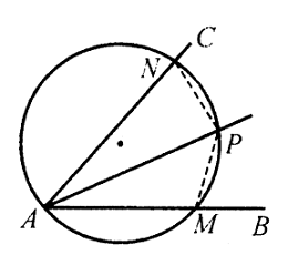 Solusi: Untuk setiap pilihan lingkaran yang melalui $A$ dan $P$, misalkan $d=AP$ dan tulis $\angle MAP=\angle NAP=\alpha$. Hubungkan $MP,NP$.