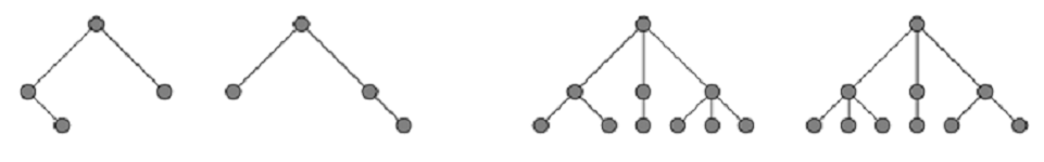 Definisikan pohon berakar sebagai pohon$T$ dengan simpul singular yang ditetapkan sebagai akar dari $T$. (Perhatikan bahwa setiap simpul di pohon tersebut dapat memiliki jumlah anak yang tak terbatas). Setiap simpul yang berdekatan dengan simpul akar $T$ itu sendiri merupakan akar dari suatu pohon yang disebut subpohon maksimal dari $T$. Katakanlah dua pohon berakar $T_{1}$ dan $T_{2}$ serupa jika terdapat cara untuk menggilir subpohon maksimal dari $T_{1}$ untuk mendapatkan $T_{2}$. Misalnya, pasangan pohon pertama di bawah ini serupa tetapi pasangan kedua tidak. Berapa banyak pohon berakar dengan 2019 simpul yang ada hingga mencapai kesamaan?
